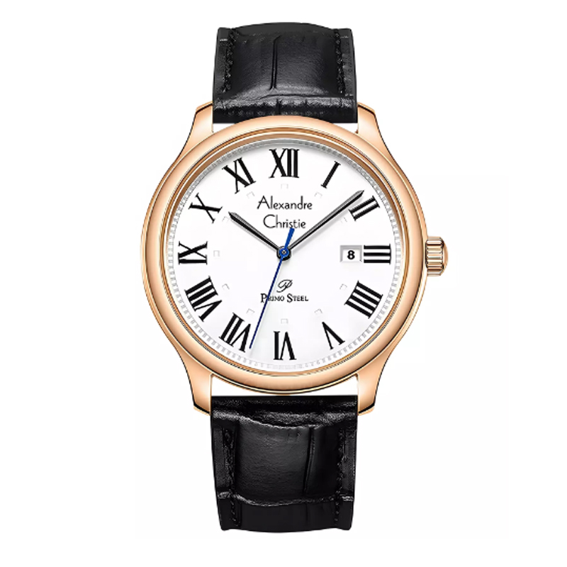 Alexandre Christie AC 1042 Rosegold White Black Leather Man MDLRGSL