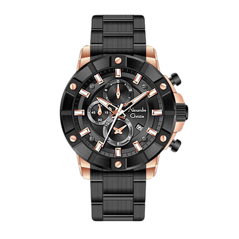 Alexandre Christie AC 6609 Rosegold Black Steel Man MCBBRBA