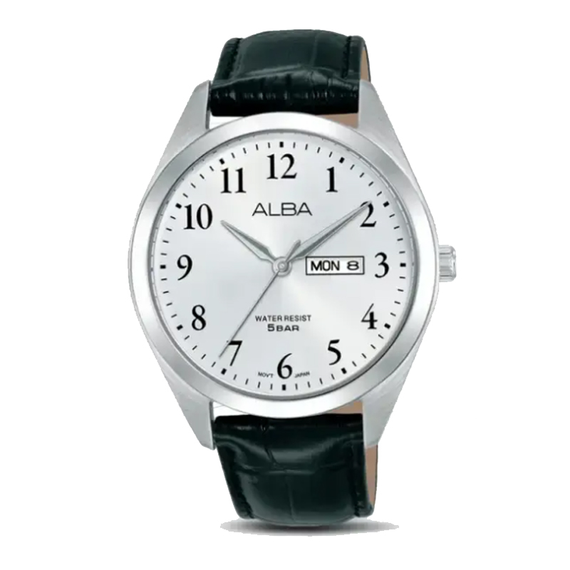 Alba AJ6219 AJ6219X1 Silver White Leather Man Date Day
