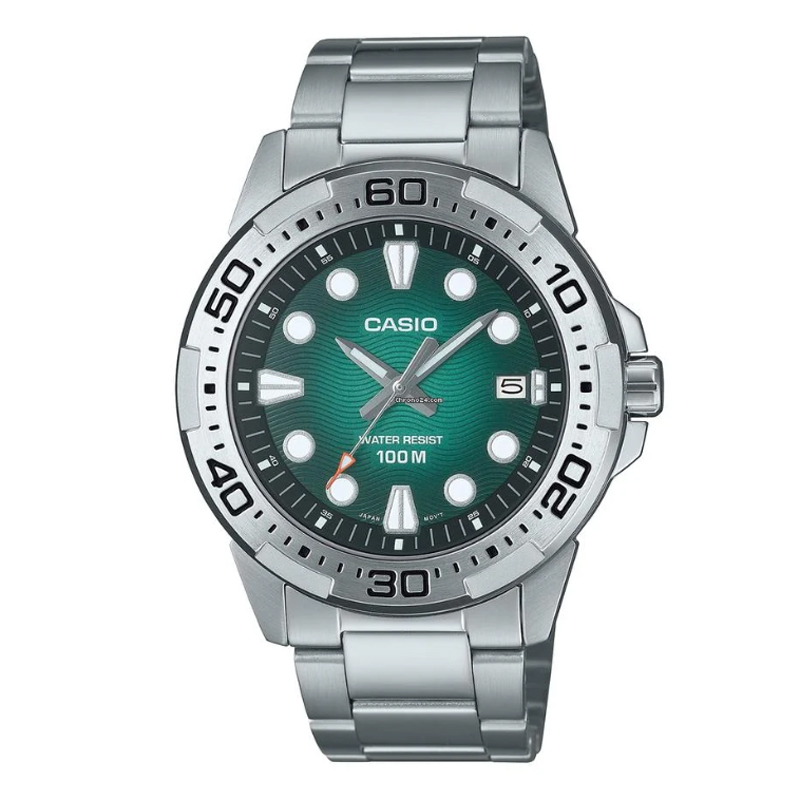 Casio MTD 140D 3AVDF Silver Green Dial Steel,